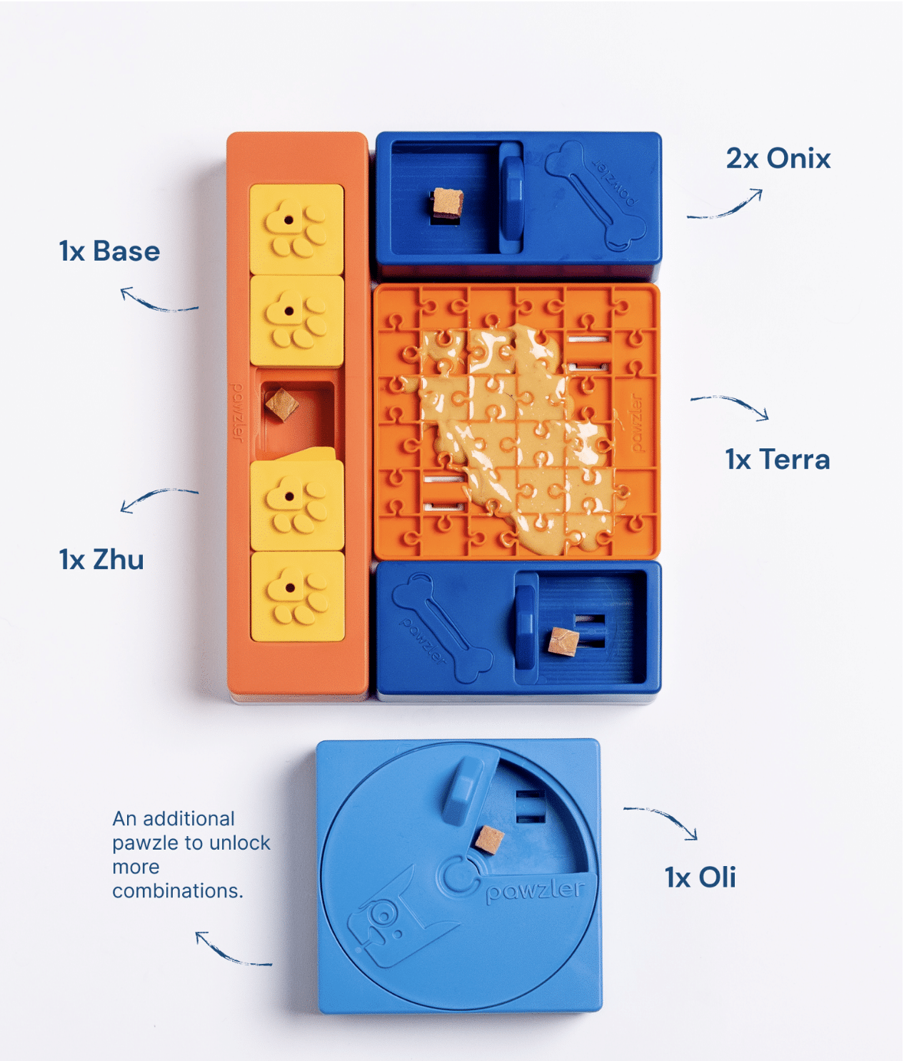 L’ensemble pour débutants est un puzzle pour chien conçu pour des heures de divertissement et de stimulation mentale. Conçu sur mesure pour les chiots qui découvrent les jouets de puzzle, cet ensemble comprend des pawzles de niveau 1, ce qui en fait l’introduction parfaite au jeu interactif. Chaque ensemble comprend au moins une base qui contient des pawzles individuels. L’ensemble pour débutants comprend des mécanismes de dissimulation de friandises, notamment la poussée par glissement et la rotation du couvercle, encourageant les capacités de résolution de problèmes de votre chien à un rythme confortable. De plus, il comprend un tapis à lécher spécial pour plus de plaisir. Remplissez les compartiments des pawzles avec les friandises préférées de votre chien, de la nourriture ordinaire ou du beurre de cacahuète, et regardez-le explorer et découvrir des récompenses cachées. Cet ensemble favorise la confiance et le développement cognitif tout en renforçant votre lien avec votre ami à quatre pattes.
