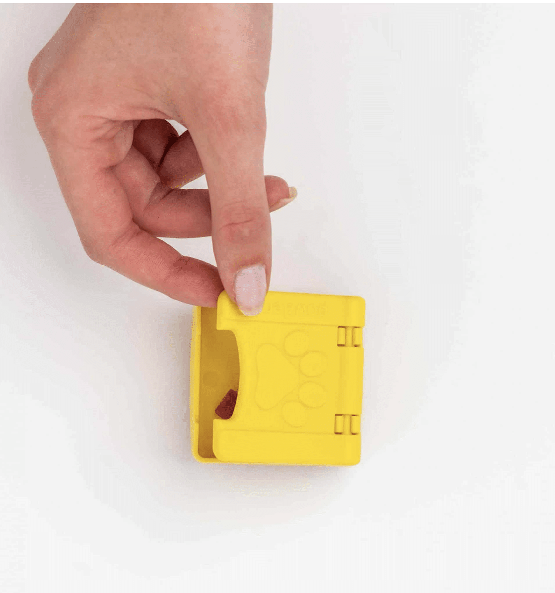 Cet ensemble se compose uniquement de Zoey Pawzles et constitue un excellent ajout pour augmenter le nombre de combinaisons possibles sur votre base. Zoey est un Pawzle qui occupe 1 emplacement sur la base et nécessite de soulever le couvercle pour découvrir la friandise en dessous. Il peut être ouvert avec le nez, la langue ou la patte d’un chien. Vous pouvez remplir les compartiments avec des friandises, de la nourriture pour chien ordinaire ou même du beurre de cacahuète pour que votre chien le trouve. Astuce : si vous tournez ce Pawzle dans différentes directions, vous pouvez modifier le niveau de difficulté du jouet. Cet ensemble n’inclut PAS de base.